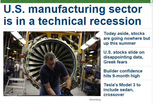 Nous avons appris, Ô surprise, que « la production industrielle aux États-Unis a de nouveau reculé en mai, à raison de 0,2%, alors que les analystes espéraient un rebond, après avoir déjà reculé plus que prévu en avril à -0,5 %, selon des chiffres de la FED »…